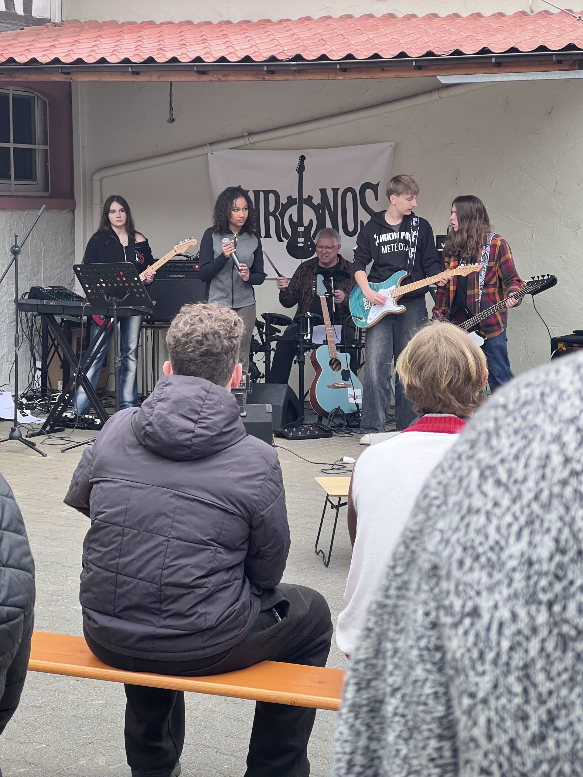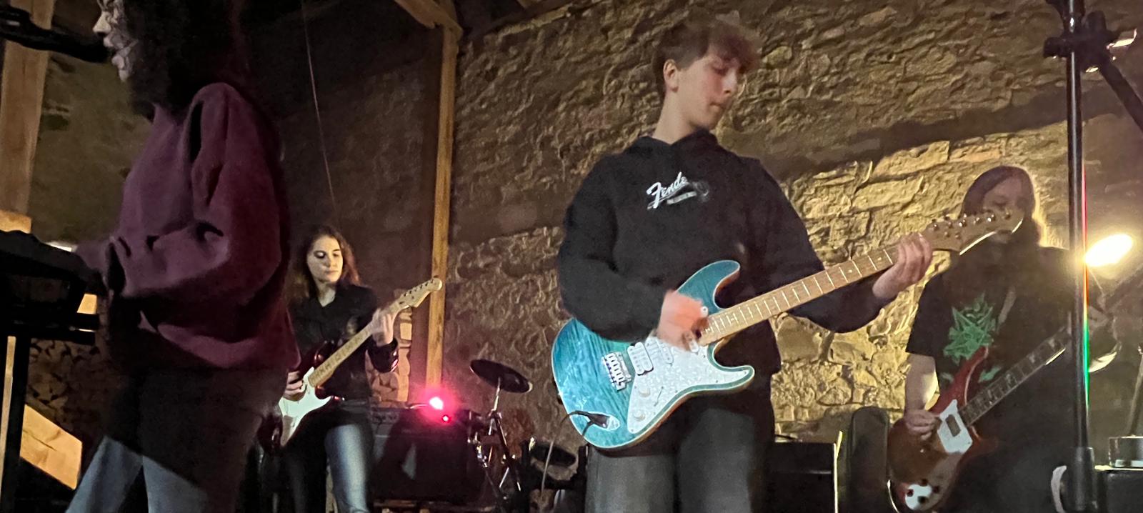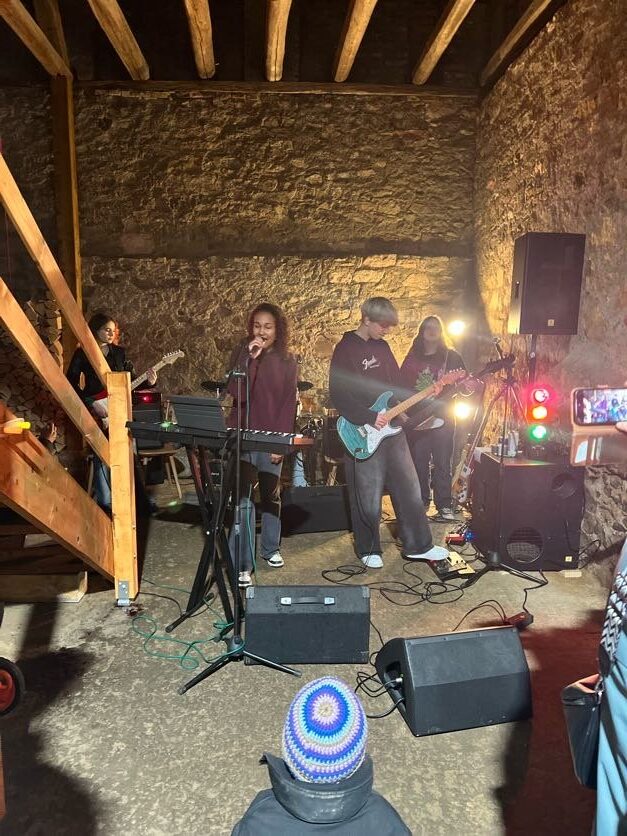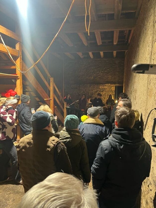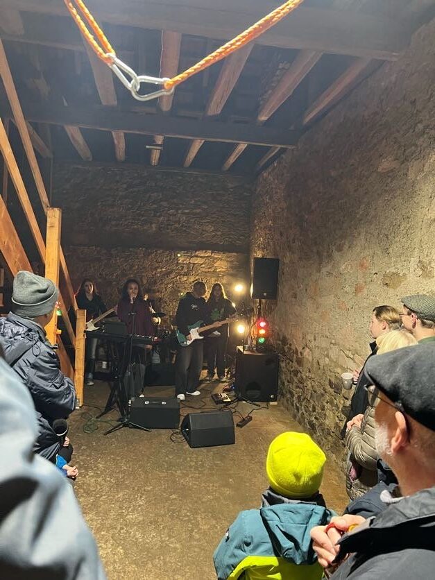 Scheunenrock bei uns im Hof! Genialer Auftritt der jungen Band Chronos inklusive Uraufführung ihres ersten eigenen Songs. Alle Bandmitglieder haben ihre Wurzeln in der AES-Schulband. Und seit anderthalb Jahren machen sie mit ihrer eigenen Band Musik. Super! Wir haben uns sehr gefreut, dass 13. Türchen des Lebenden Adventskalenders mit über 200 Gästen gewesen zu sein. Vielen Dank euch allen fürs Kommen, Helfen und gemeinsam Freude haben!