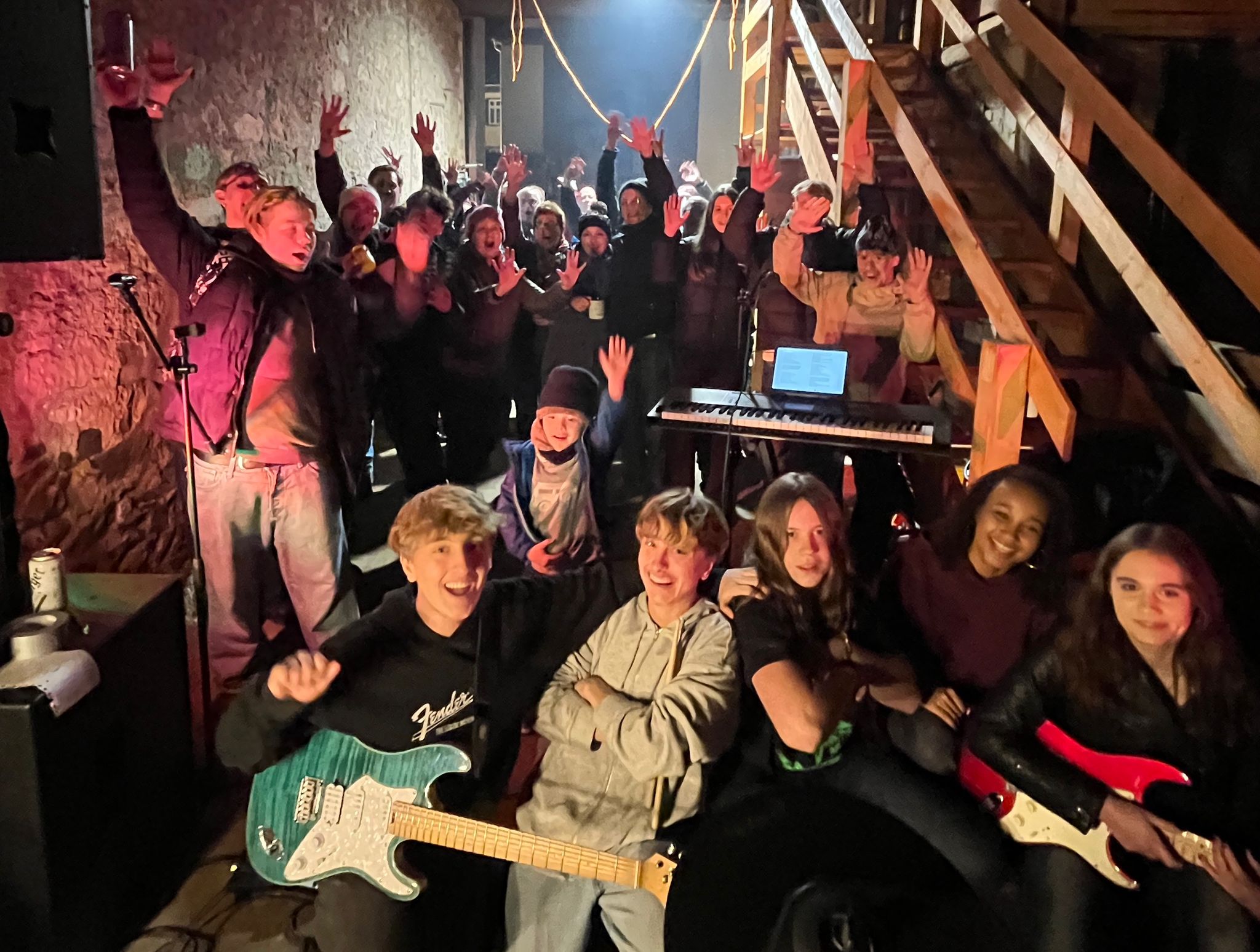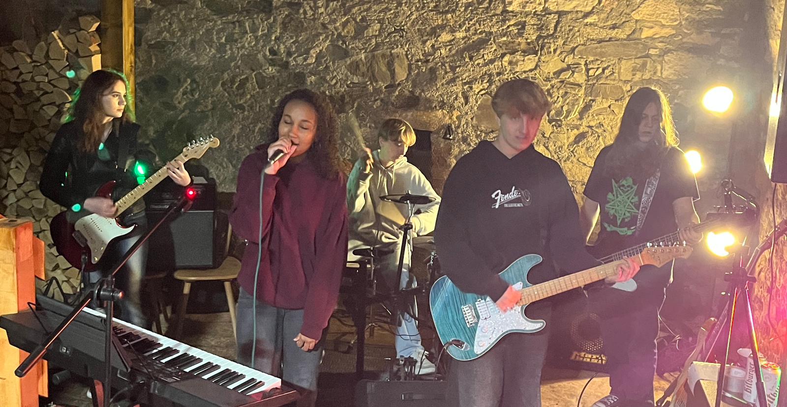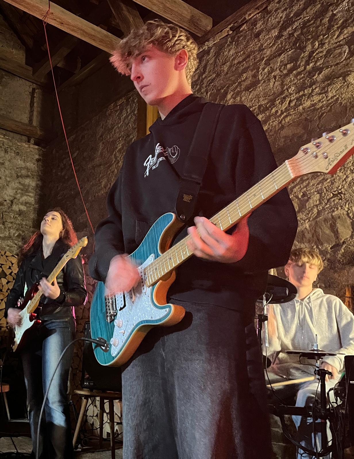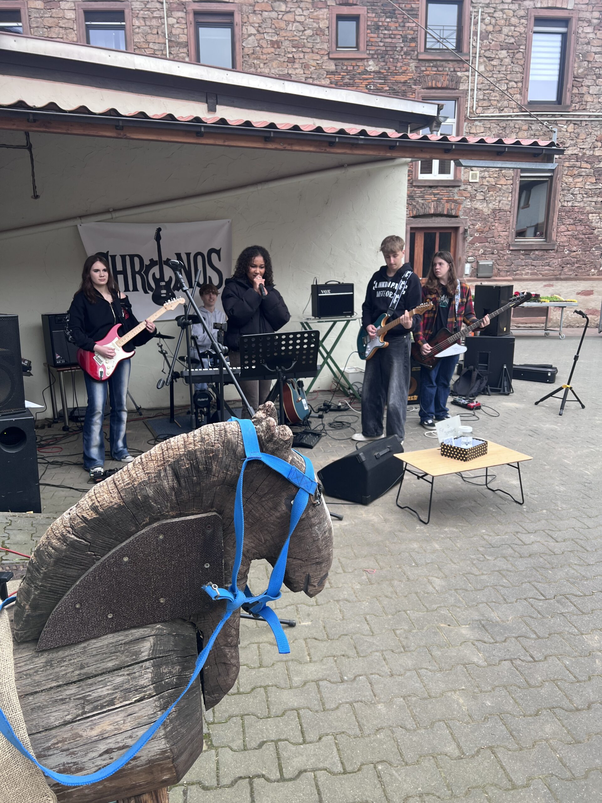 Scheunenrock bei uns im Hof! Genialer Auftritt der jungen Band Chronos inklusive Uraufführung ihres ersten eigenen Songs. Alle Bandmitglieder haben ihre Wurzeln in der AES-Schulband. Und seit anderthalb Jahren machen sie mit ihrer eigenen Band Musik. Super! Wir haben uns sehr gefreut, dass 13. Türchen des Lebenden Adventskalenders mit über 200 Gästen gewesen zu sein. Vielen Dank euch allen fürs Kommen, Helfen und gemeinsam Freude haben!