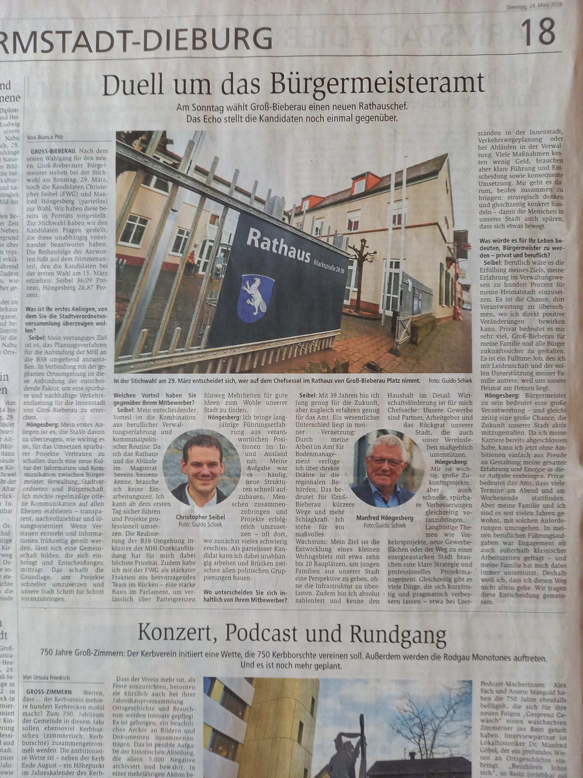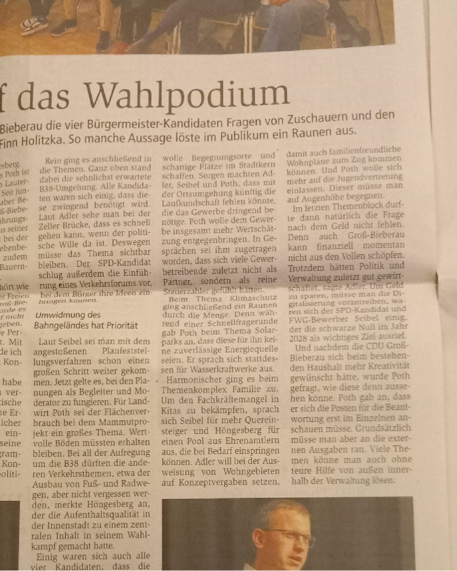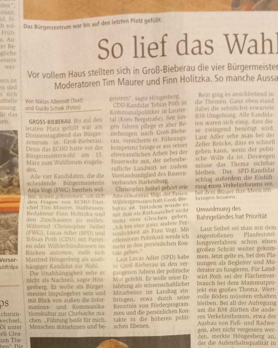 Ich freue mich sehr über die vielen Stimmen und darüber, dass ich in die Stichwahl um das Bürgermeisteramt von Groß-Bieberau gehen darf.