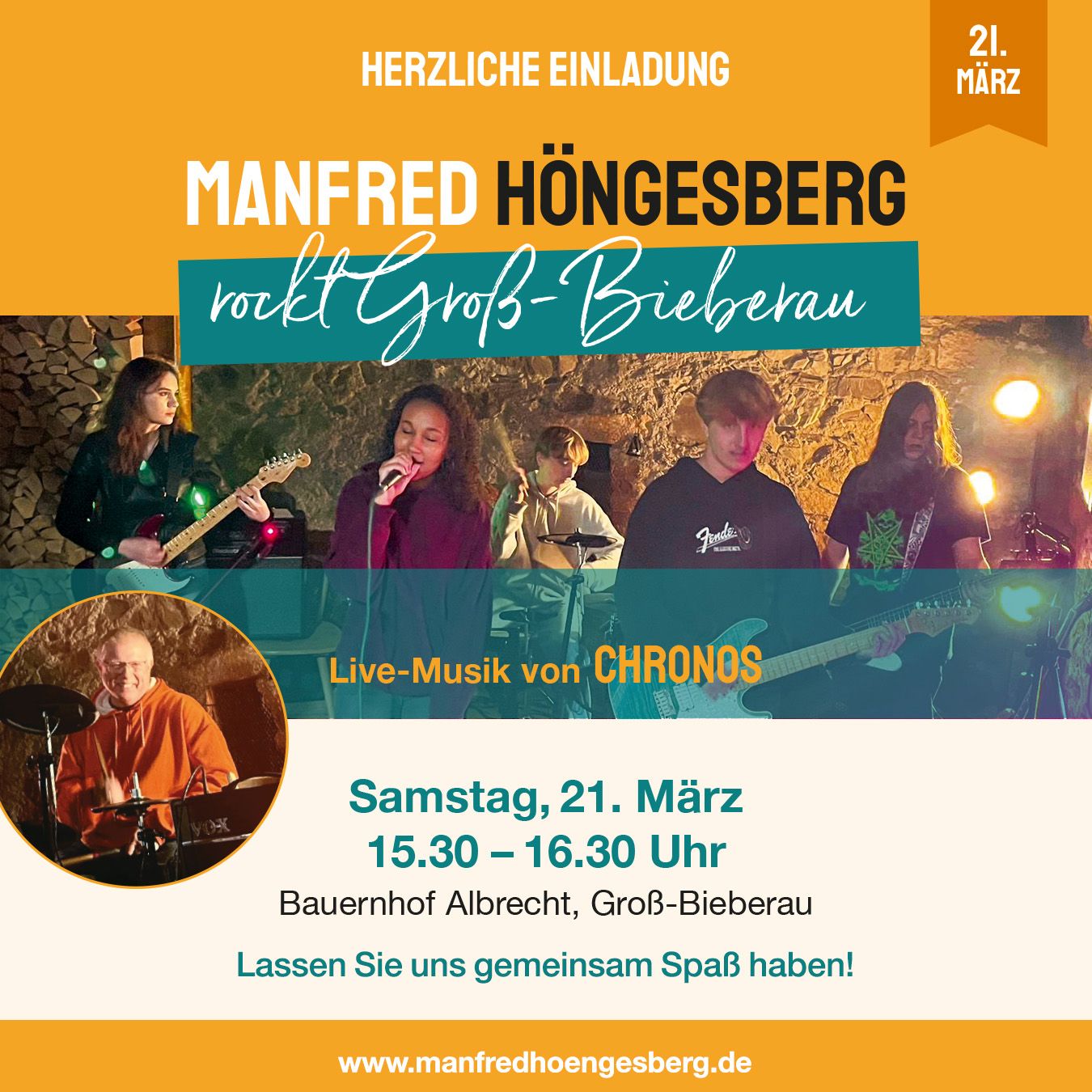 Mehr davon für unsere Stadt! Danke an Familie Albrecht, dass wir auf eurem Hof zusammenkommen durften – mit Live-Musik der jungen Rockband CHRONOS, deren Wurzeln in der AES liegen, und vielen guten Gesprächen quer durch alle Generationen. Alte Bekannte wiedersehen, neue Menschen kennenlernen – genau dieses Miteinander macht Groß-Bieberau aus. Und genau darin liegt das Potenzial unserer Stadt. Für mich ist das ein echtes Herzensanliegen. Stichwahl am 29. März – gehen Sie wählen oder nutzen Sie die Briefwahl.